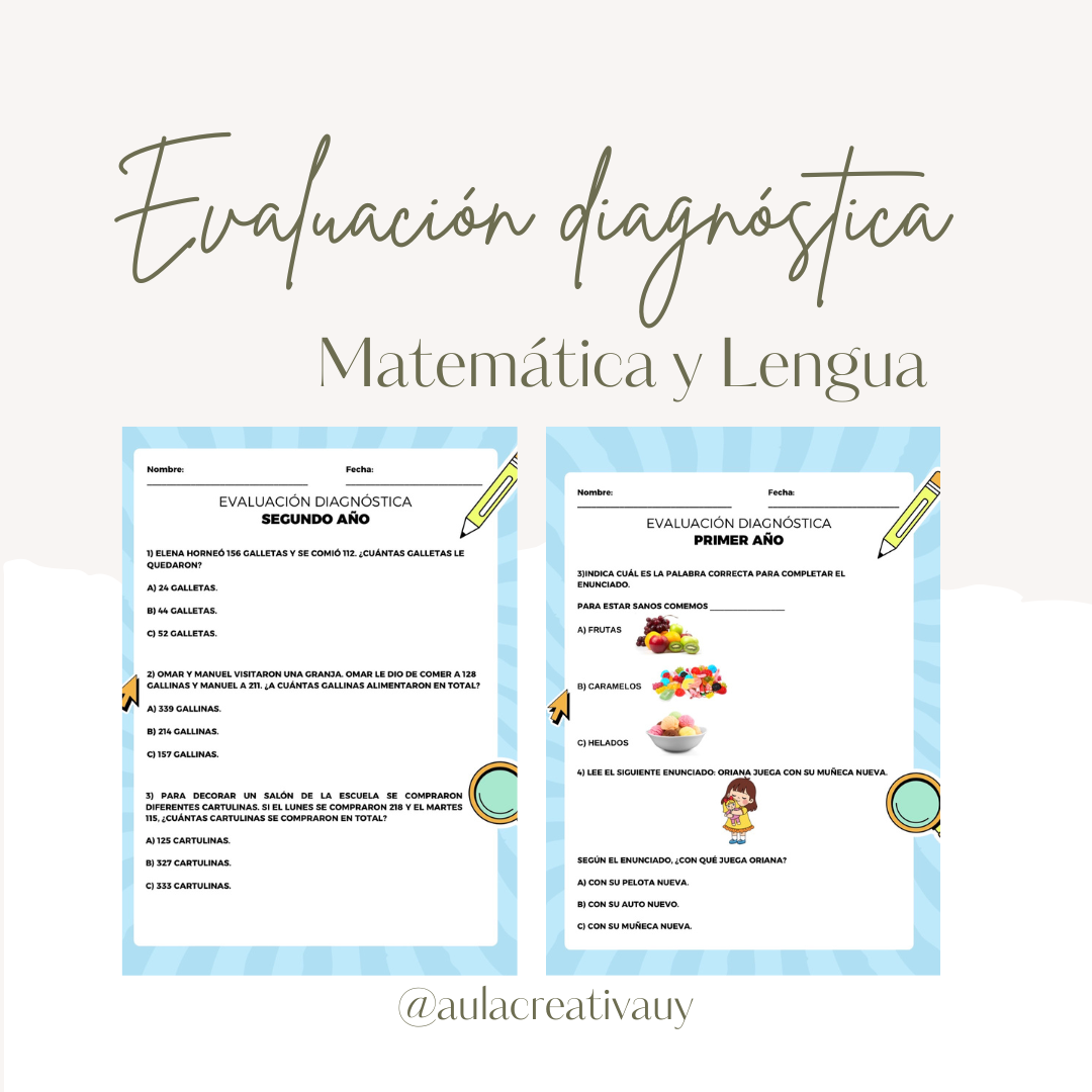 Esta evaluación diagnóstica en Lengua y Matemática incluye 30 actividades en total (15 de Lengua y 15 de Matemática), pensadas para relevar los saberes previos de los estudiantes al inicio del año escolar.