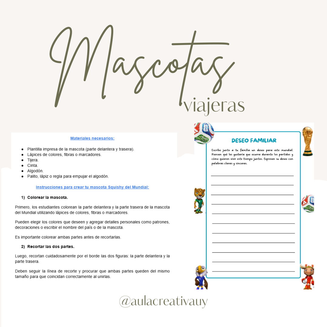 El material incluye un documento con los materiales necesarios, un instructivo paso a paso para la creación de las mascotas y plantillas listas para imprimir, que permiten realizar la actividad de manera sencilla tanto en el aula como en el hogar. Además, se incorpora un segundo documento con fichas de escritura en mayúscula y minúscula, pensadas para adaptarse a todos los grados.