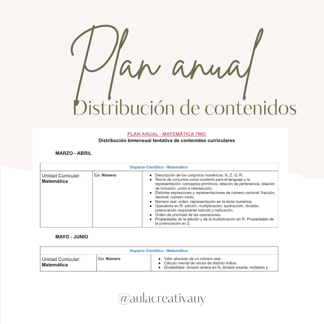 Plan anual – 7mo y 8vo EBI Matemática CategoríasPlan anual Evaluación diagnóstica Efemérides Suscripción mensual Inicio de clases Proyectos Inicial 3, 4 y 5 años Primer año Segundo año Tercer año Cuarto año Quinto año Sexto año Multigrado Secundaria Plan anual – 7mo y 8vo EBI Matemática$490 Plan anual con distribución bimensual de contenidos para organizar y planificar el año escolar de forma ordenada. Se envía en formato Word para que cada docente lo pueda editar, si así lo desea. Plan anual - 7mo y 8vo EBI Matemática cantidad Comprar ahora Categorías: Plan anual, Secundaria Productos relacionados Plan anual – Inicial 4 años $490 Añadir al carrito Plan anual – 7mo y 8vo Ciencias de la Computación $490 Añadir al carrito Plan anual – 7mo EBI Matemática $390 Añadir al carrito Plan anual – Tercer año $490 Añadir al carrito