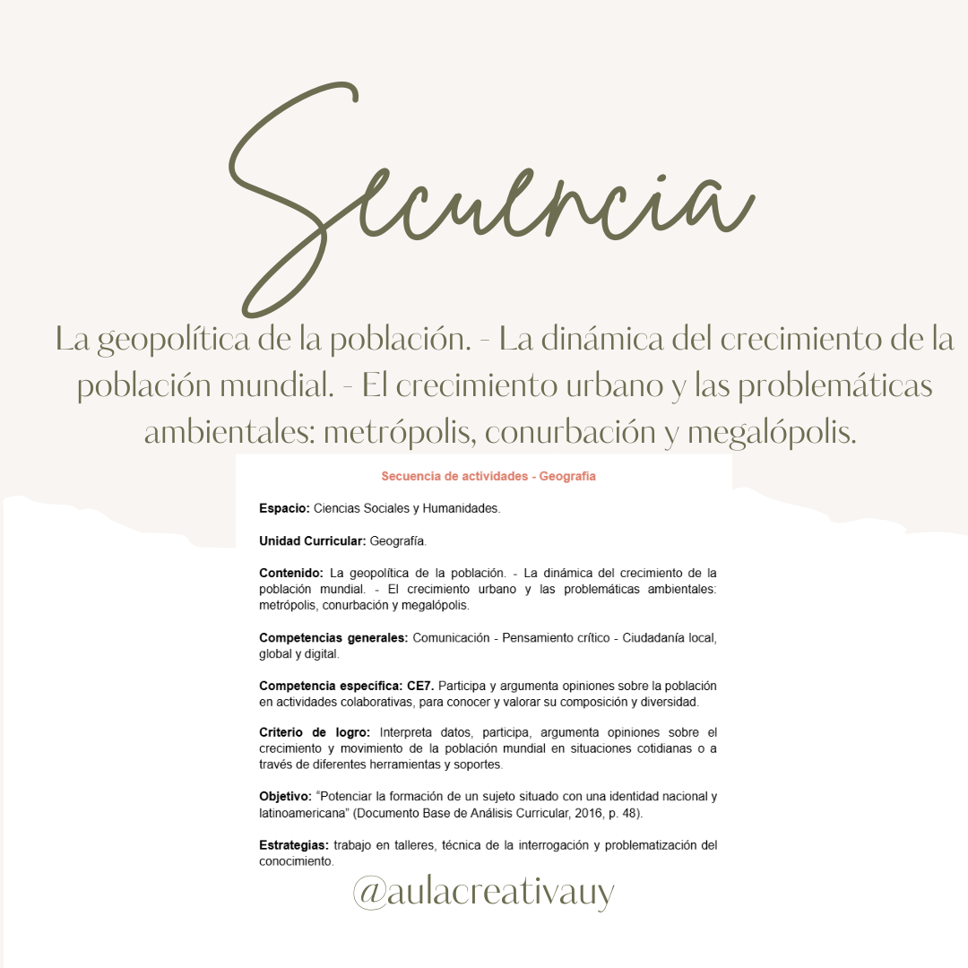 Una secuencia pensada que promueve la comprensión de las dinámicas poblacionales y urbanas y su impacto en el ambiente y la organización del espacio.